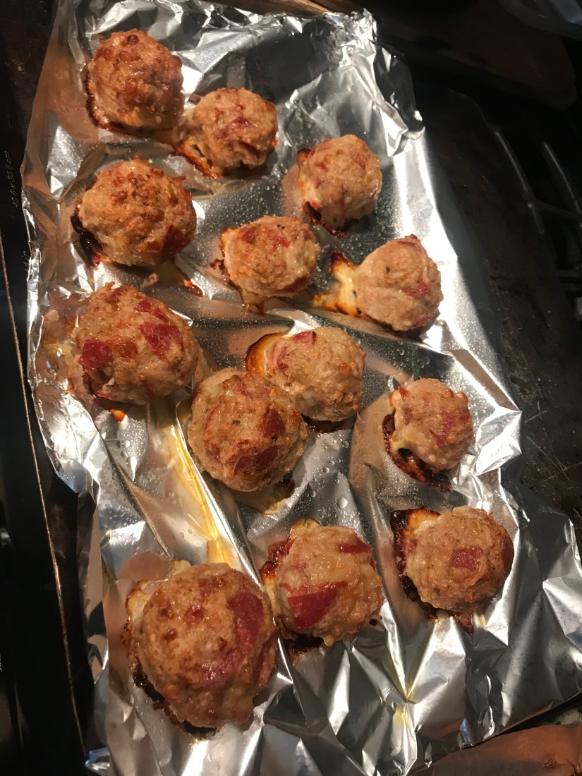 My new favorite is his pepperoni chicken parmesan meatballs. I have to be careful with these because I am losing carbs each week and these are super poppable. I can quickly get out of control. My solution right now is to make a batch of each on Sundays and have a couple of each kind at lunch each day.