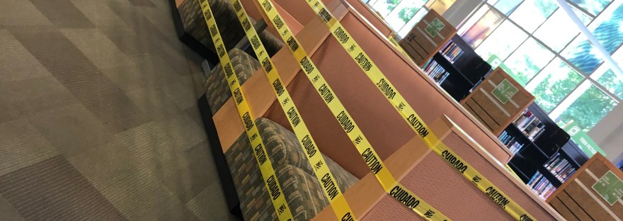 I went to a branch of our local public library recently.  They opened up the buildings a few weeks ago.  This gorgeous, light-flooded, award-winning building, created for people to congregate and spend time reading and learning, is full of caution tape to keep people out or at least moving.
