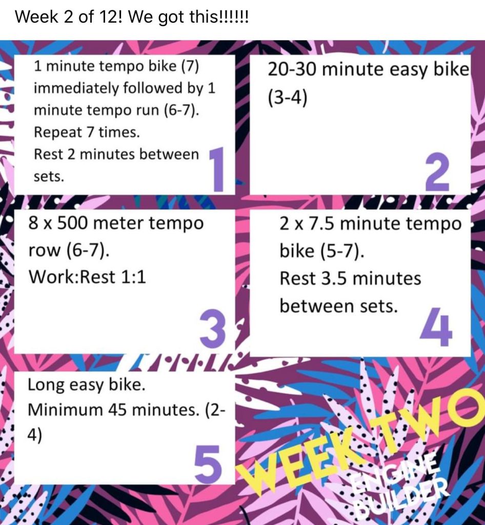This week I am doing two-a-days. As in two workouts in the same day. My regular grind for an hour then anywhere from an extra 30-50 minutes as part of an engine builder program our group of friends is doing. It’s exhausting but man it feels good.