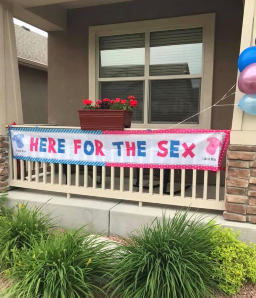 The next time I saw it in a text message. Not a text about sex, rather about the sighting of a sign in the area. Then I saw a friend across country post another sign. From full blown yard signs to banners, the catchy phrase is most likely coming to house nearby for a gender reveal!