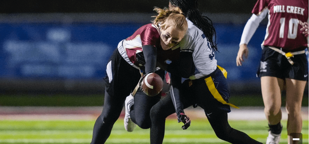 In high school, things get a little more serious. I remember reading in the paper that flag football would be coming to our county as a grant-funded club sport for girls. How exciting! The transition to high school had been a challenge for her and I thought it would be great. But, the schedule and coaches discouraged her from trying out that first year. She could get injured. She was already playing volleyball. It wouldn’t work.