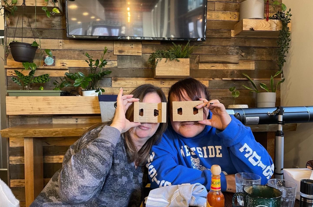 For me today it was about the insert in the Jenga box. The cardboard piece that looks like an electrical outlet. It really wasn’t part of the game but it turned into part of my game. A photo session of sorts. For those few moments, we giggled and embraced our silly side. Not for any particular reason. The outcome is one for my memory book.