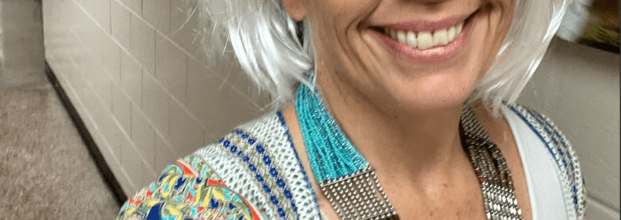 As I often try to do, I responded to the call in an unexpected way. I knew from previous years that my colleagues would show up with walkers, medicine bottles, and curlers in their hair. But with my sassy white bob I thought to myself, what do I *want* 100 to be like? What am I working for right now?