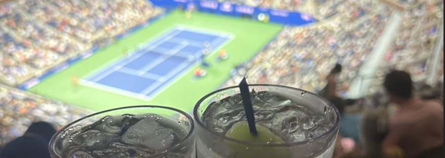 A little digital glow tennis. A shoe cleaning station. Some freebie sunscreen. Free customization on your keepsake items. Free charging station which was a midday must for me. An air conditioned hang out space to refresh and recharge. A terrace view of some tennis for lay people to try new racquets. Maybe even some time to sip on one of the fabulous Open cocktails. The Honey Deuce was a fan favorite by far. The commemorative glass with the historical title wins was an added bonus. The iced version was an amazing cool down in the moment as well. They even had fancy straws to take home with cleaning brushes in a nice straw sack. Again thank you American Express. You did sponsor the event well.