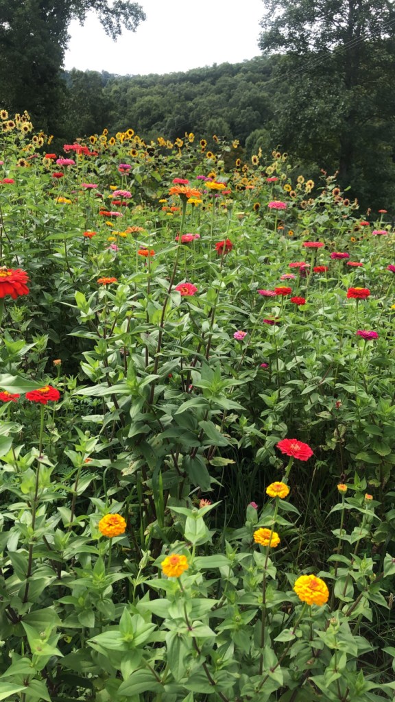 Sunflowers, dahlias, zinnias and so much more are soaking up the sun and the rain day by day in the mountains. From seed or tuber to blooms. Fresh picks to make everyone smile. So much happiness around us.