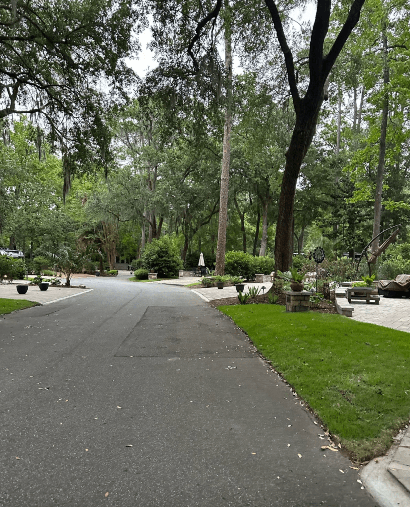 Each lot was slightly different in design. From the decorative pavers to the shrubbery. Some sites even had the South Carolina symbol in the pavement. That’s some extra flair for sure. Each unique site had privacy which was nice. There was a lake with a notice about alligators and my space was by the creek. I watched daily but didn’t have any alligator encounters. Thank goodness.