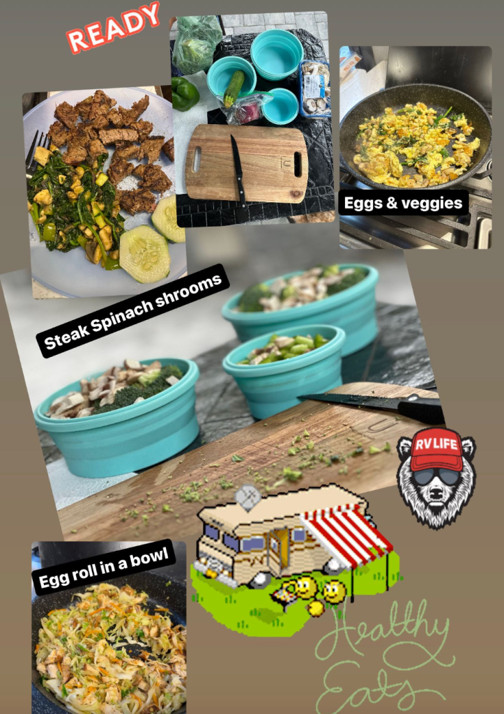 While on this trip, I was focusing on clean eating. Not too hard to do since you have pretty much a condensed home kitchen in an RV. A little planning and preparation and clean eating is doable. Below is a screenshot of one day’s healthy eats. It was fun to plan and prepare and document this trip and clean eating. A new road challenge to conquer. I’ll put this challenge to these again when im staying in a hotel vs RV.