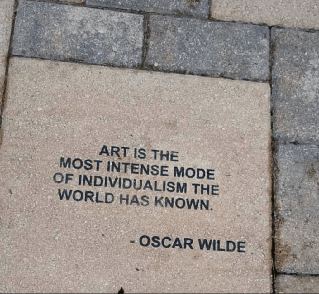 Just a hop, skip and a jump to the side and we found this outdoor display on the back of a lemonade stand. This was interesting as it was more of a canvas vs. a wall painting. Vibrant colors picked up by the sun before the cloud cover approached.