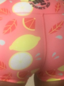 A decision is made. Lemons it is.  Big, juicy lemons on the teeny tiny booty shorts. A pinkish color to warm your heart for the sunshine weather that is fast approaching. I will have oversized lemons she said. I will have a muffin top another said. And the other said I’m so damn excited. The shorts arrive in a few short days as does the excitement and giggles. There is even a matching lemon (boobie) shirt. I am going to refrain from sharing that photo but it completes the outfit for all three of these ladies.