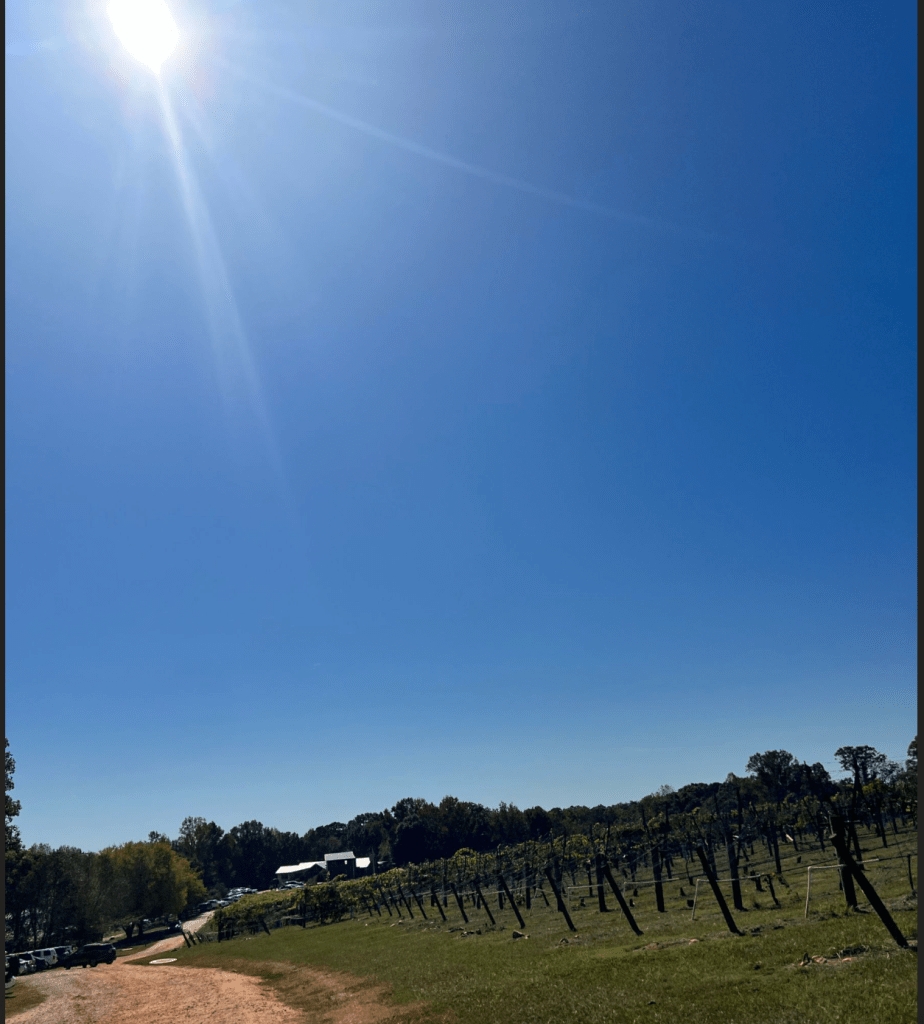 Not all dirt road lead to wineries but on this fall Saturday my dirt road headed right to one of the cool wineries in North Georgia. Cavender Creek is just about an hour or so outside of the city near the college town of Dahlonega. Home to the University of North Georgia. Turning off the main road you drive a short distance on the dusty road as you see the vines in the sunshine.