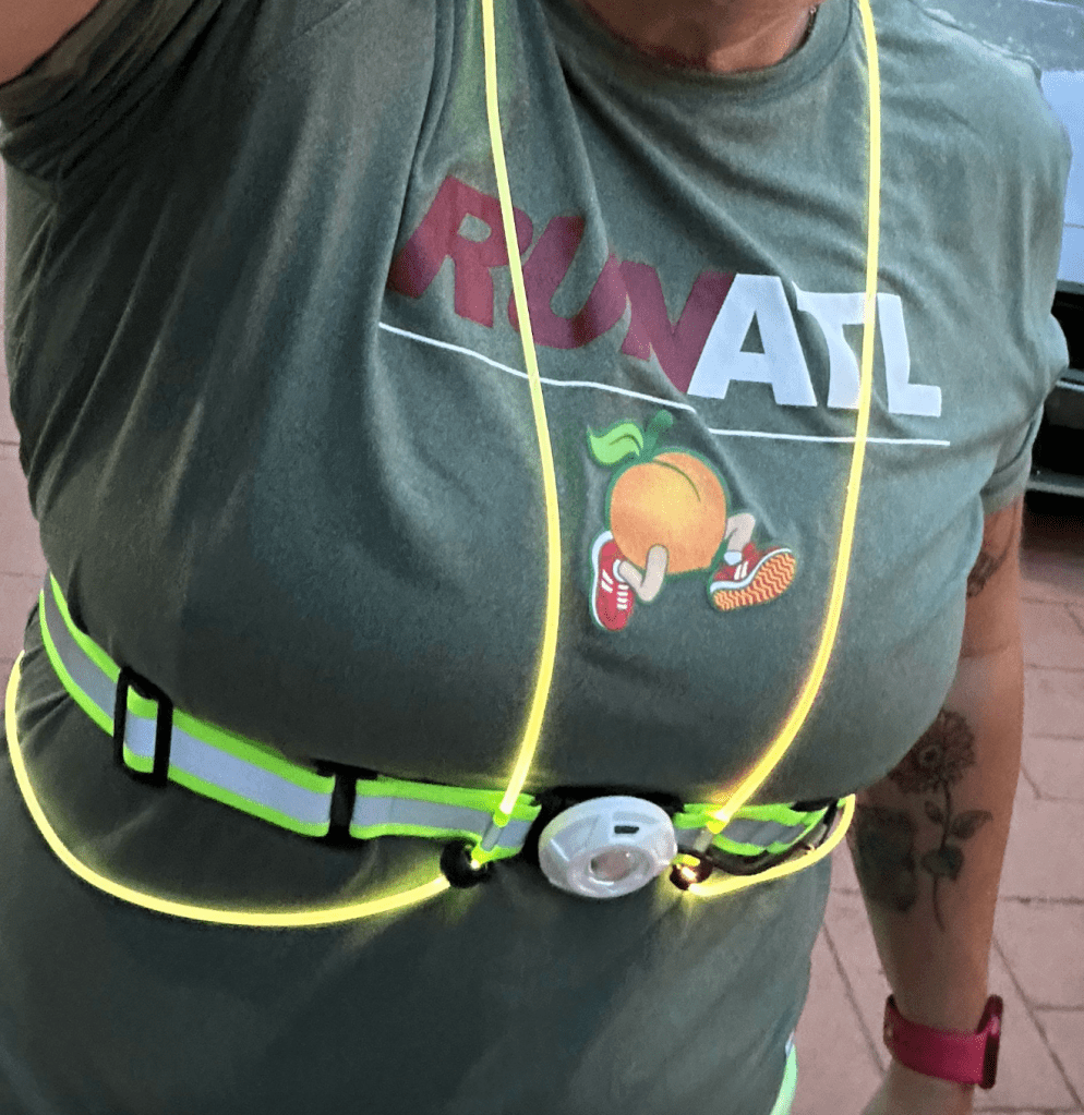 Equipment tidbit: this one has a safety focus. Light up vests for my running group. Many run in the dark at 5am. One runs in the woods when it’s dark. Neon lights help pave the way for our group keeping us safe. So excited we all have them. They look cool, too. I had fun lighting up myself for a little night jog this month. Light weight is also key.