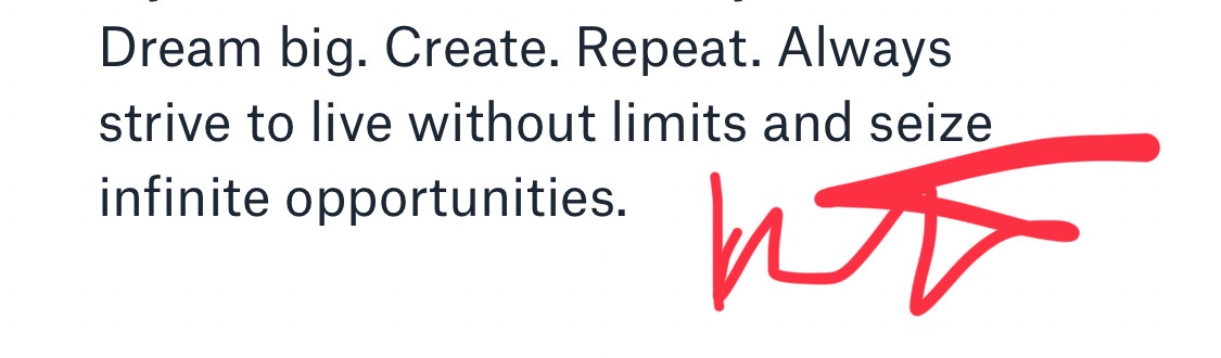 My motto is and and always will be: Dream big. Create. Repeat. Always strive to live without limits and seize infinite opportunities.