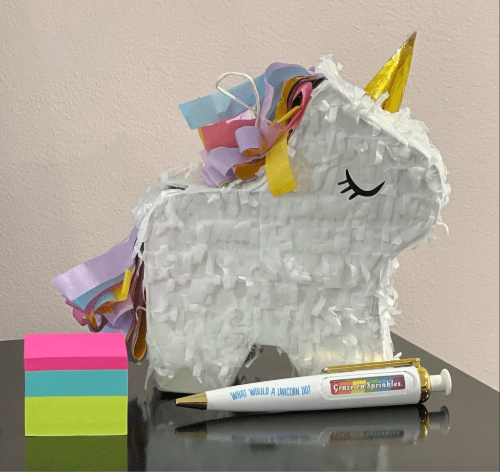 I’m ending this photo reel on a unicorn note. A colorful collection of sticky notes. An accent pen. All together with a miniature unicorn piñata. A cool gift set I received that brings nothing but giggles when I look at it. I don’t so much use the items for their functionality, rather I use it to decorate a fun office space I have. Just because.