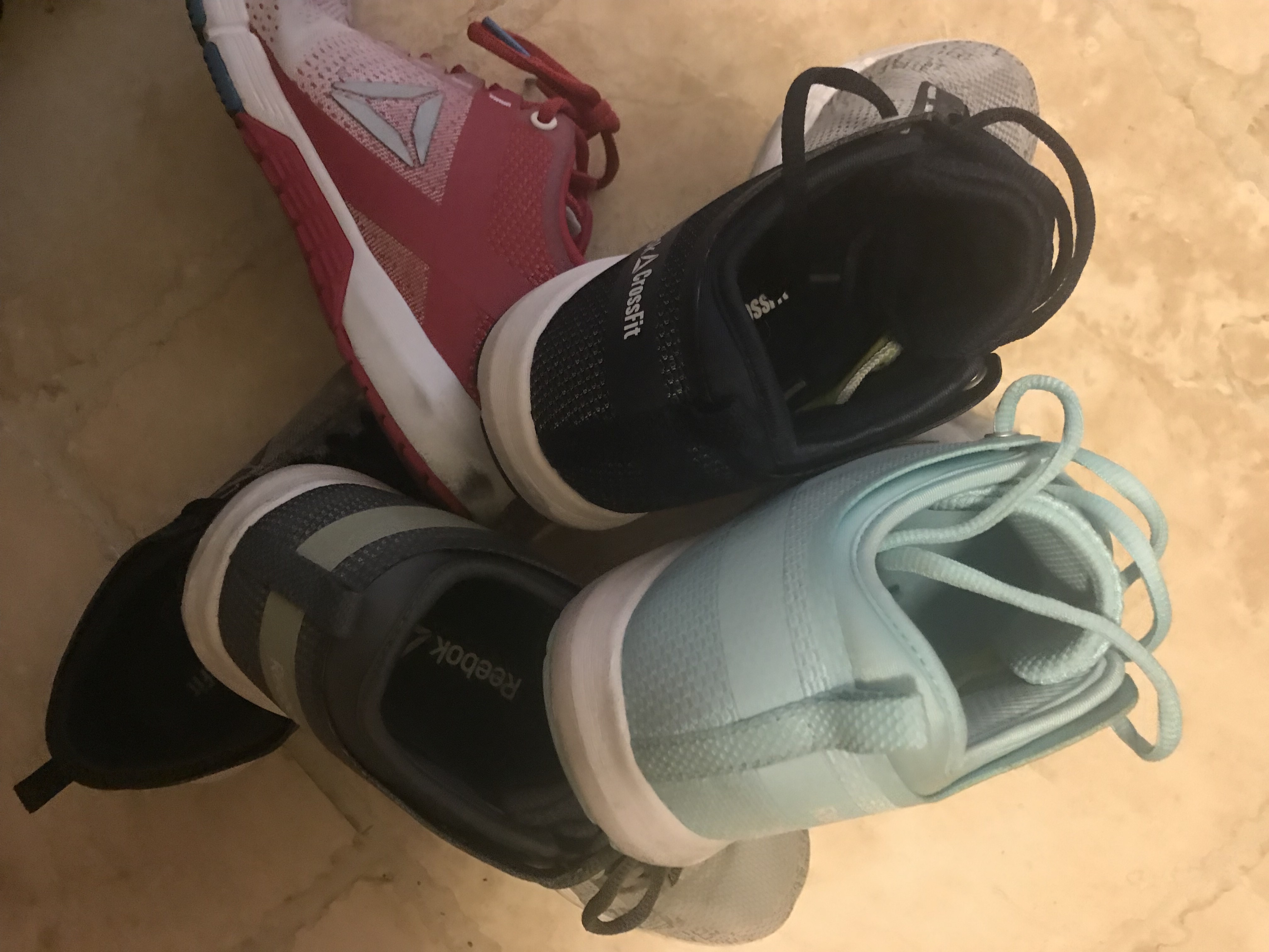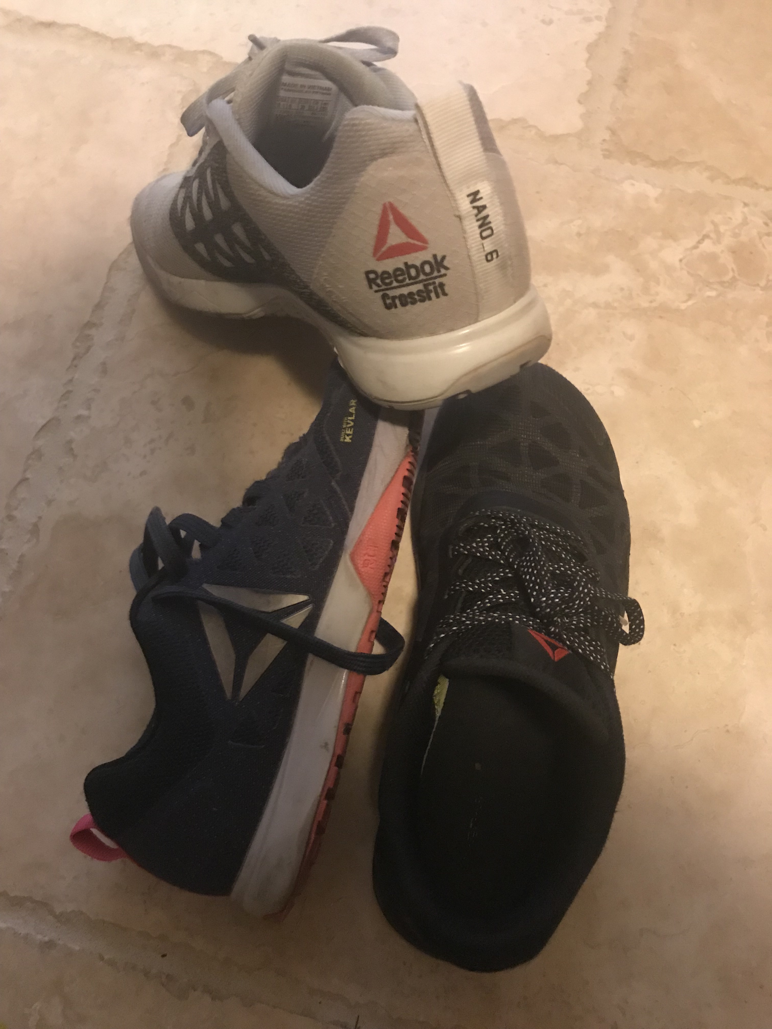 A few months passed and the new year came. I waited patiently and watched to see what others had on their feet. There was a good variety of brands and types. Some even changed shoes to run or to lift. I was fascinated. I asked questions. In no time, I bought my first pair of Metcons. Vibrant blue. Oh, how they seemed heavy when I ran. Like I was running with bricks on my feet. They just didn’t move well with me. Off they go to a friend.