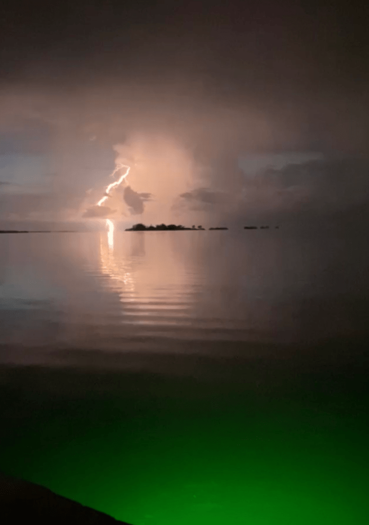 Back at the vacation spot we sat and watched the clouds in the distance. We heard sounds of thunder near and far. We felt the breeze pick up then die down. We saw single lightning strikes in the distance then flashes that lit up the sky. It was almost like fireworks in the late afternoon but not a drop of rain.