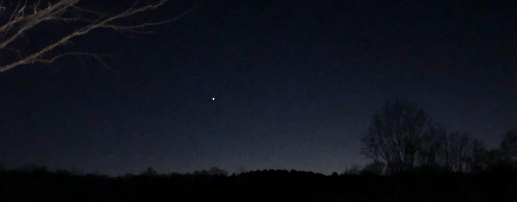 I loaded my car and started the night by going out to see the Christmas Star. I went to a parking lot in a remote park about 15 minutes from my house. I was surprised to find about 25 other cars in the lot, all there to view this planetary wonder. I just took some time to quietly look and think about this year and its gifts.